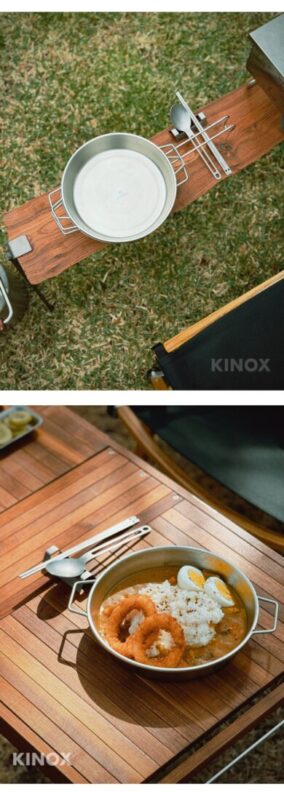 รายละเอียดสินค้า: ยกระดับมื้ออาหารในแคมป์ของคุณด้วย Kinox Utility Pan 1100 อุปกรณ์แคมป์ปิ้งจากเกาหลีที่ออกแบบมาเพื่อความคล่องตัวสูงสุด ไม่ว่าจะเป็นจานสำหรับใส่อาหารจานใหญ่ หรือจะเปลี่ยนโหมดเป็นกระทะสำหรับผัดและทอดมื้อเล็กๆ ก็ทำได้ทันที ผลิตจากสแตนเลส 304 คุณภาพสูง ปลอดภัย ทนทาน และดีไซน์สวยงามเข้ากับทุกชุดเครื่องครัว