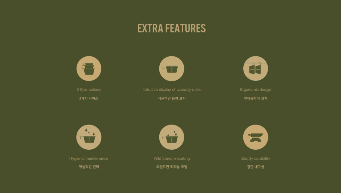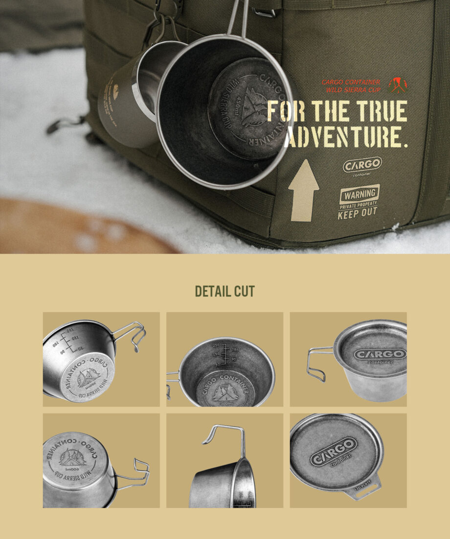 รายละเอียด : WILD SIERRA CUP ถ้วยอเนกประสงค์ที่ตอบโจทย์ทุกกิจกรรมกลางแจ้ง ผลิตจากสแตนเลส 304 คุณภาพสูง เคลือบด้วยไทเทเนียมพร้อมกระบวนการ WILD GRAIN สร้างพื้นผิวลวดลายพิเศษที่มีเอกลักษณ์ สะท้อนความดิบและกลมกลืนกับธรรมชาติ มาพร้อมมาตรวัดปริมาตรภายในเป็นมิลลิลิตร ช่วยให้ตวงวัดปริมาณได้อย่างแม่นยำ ด้ามจับออกแบบตามหลักการยศาสตร์ (อยู่ระหว่างการจดสิทธิบัตร) ให้การจับถือที่กระชับและสะดวกสบาย สามารถแขวนกับอุปกรณ์แคมป์ปิ้งได้หลากหลาย ที่ก้นถ้วยมีการสลักลาย CARGO CONTAINER ซิกเนเจอร์ของแบรนด์ เพิ่มความโดดเด่นไม่ซ้ำใคร การเคลือบไทเทเนียมช่วยเพิ่มความทนทานต่อรอยขีดข่วนและการสึกหรอ ทำความสะอาดง่าย ใช้งานได้อย่างมั่นใจในทุกสภาพแวดล้อมกลางแจ้ง ให้ WILD SIERRA CUP เป็นคู่หูที่สมบูรณ์แบบสำหรับการผจญภัยของคุณ