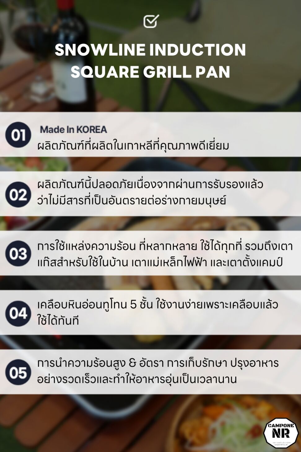 เตรียมพบกับ SNOWLINE INDUCTION SQUARE GRILL PAN ได้ที่ร้าน CamponeNR ทั้งสองสาขา สาขาหนองแขม , สาขาราชพฤกษ์ และร้านในเครือพันธมิตรทั่วประเทศ และสั่งซื้อออนไลน์ได้ที่ เว็บไซต์ www.camponeoutdoor.com นะครับ