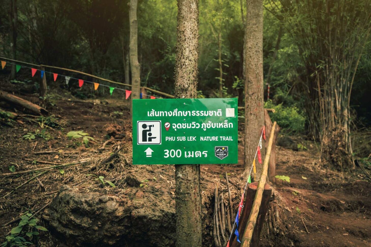 การขึ้นจุดชมวิวภูซับเหล็ก จะต้องเดินเท้าเท่านั้น ใช้เวลาประมาณ 15-30 นาที แล้วแต่ความฟิตของแต่ละคน ทางเดินจะเป็นบันไดดินขั้นๆ แบบนี้ บางช่วงก็จะเป็นทางราบทางชันสลับกันไป